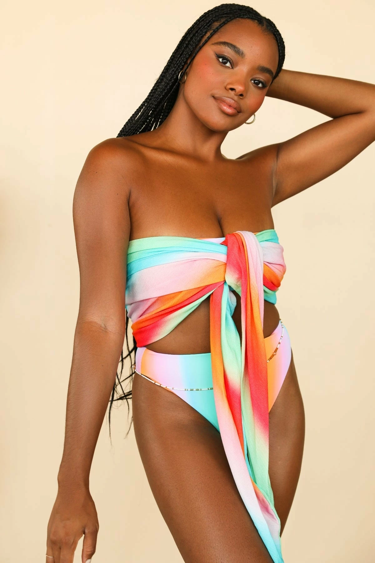 It’s a wrap. The Nomad sarong is the perfect cover up wrap skirt, with a high slit and side tie wrap.